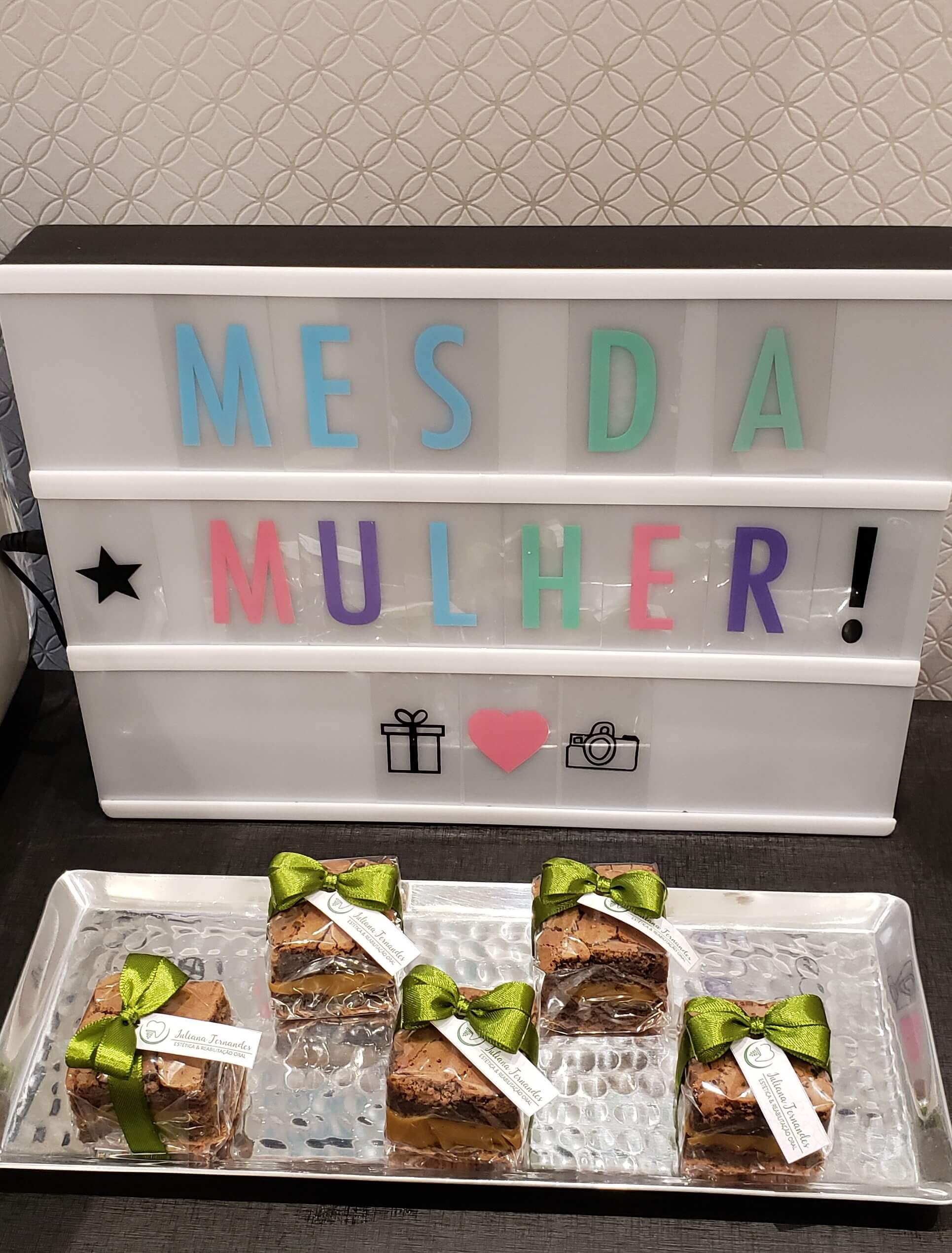 Reconhecemos a grande importância que as mulheres têm para a nossa sociedade, até porque a maioria da equipe é composta por mulheres incríveis. Todas muito dedicadas ao lado profissional, sem jamais esquecer do lado pessoal. Esse equilíbrio que faz com que nossas dentistas trabalhem felizes e busquem cada vez mais o aperfeiçoamento técnico-profissional. Por isso, no mês de março, caprichamos na comemoração referente ao Dia Internacional da Mulher e presenteamos nossas pacientes com deliciosos brownies.